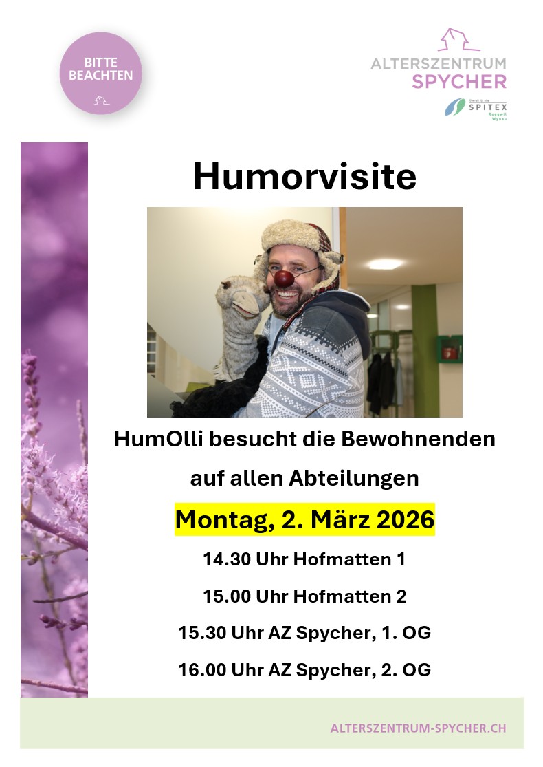 Wir sind aktiv und bieten täglich verschiedene Aktivitäten an. Die entsprechenden Wochenpläne sind auf den Abteilungen aufgehängt. Möchten Sie etwas Spezifisches wissen, dürfen Sie uns jederzeit gerne anrufen.