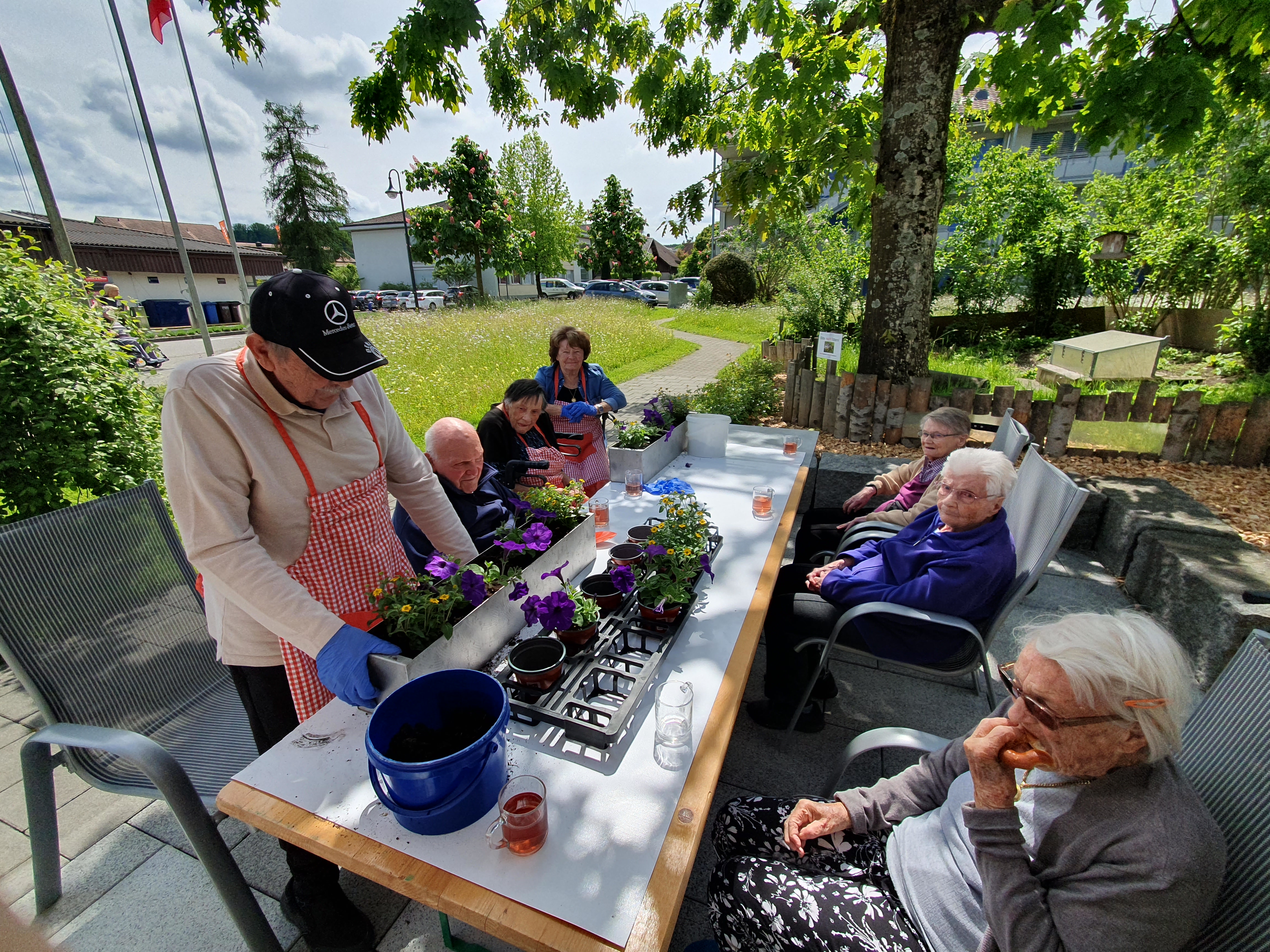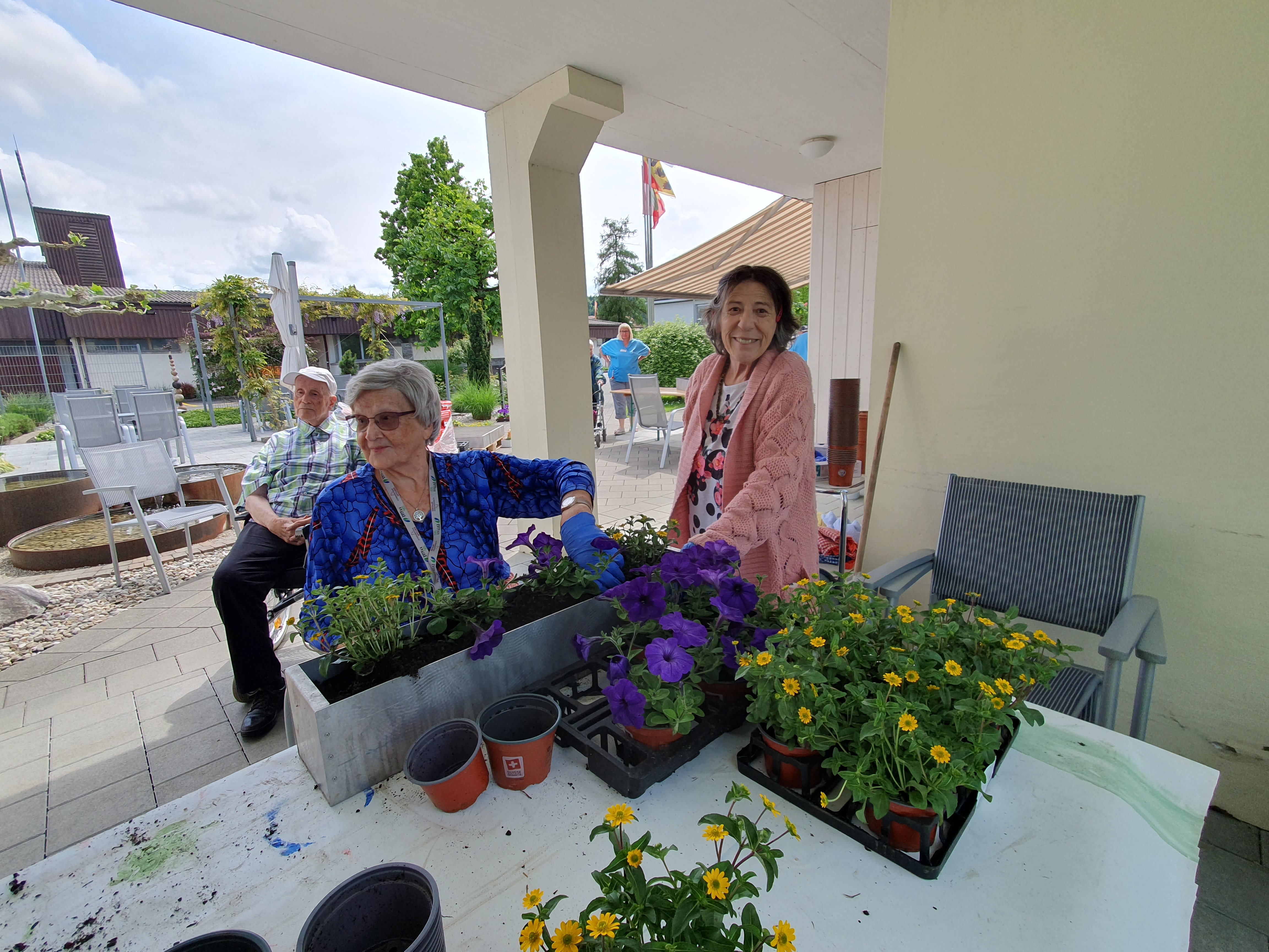 Der Frühling ist da und Zeit die Blumenkistchen zu bepflanzen, unsere Bewohnenden waren mit vollem Elan dabei.