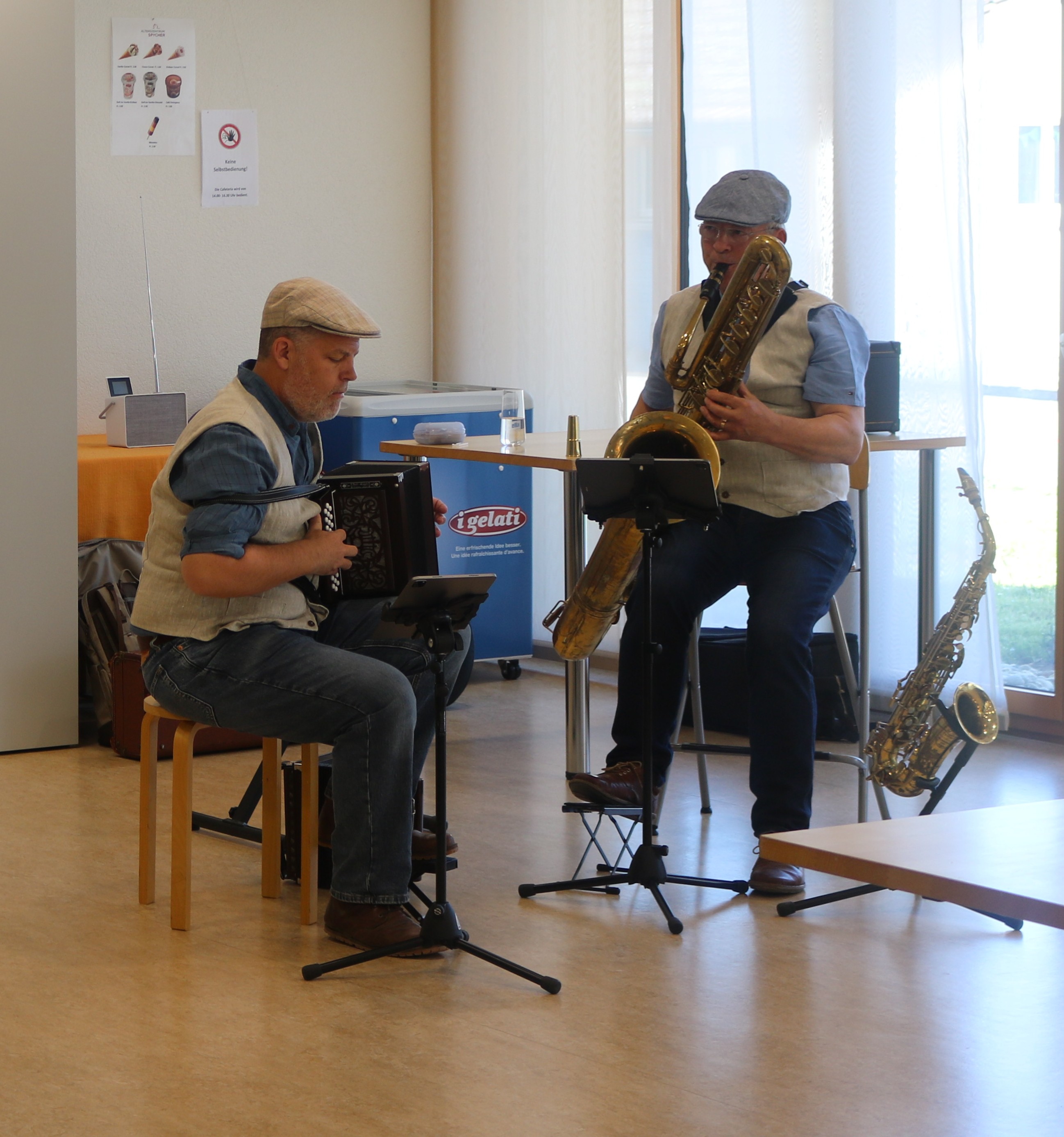 Das Duo Hanspeter Ulrich und Peter Zulauf begeisterte die Bewohnenden und Besucher mit ihrem grossen Repertoire aus Jazz und Volksmusik aus aller Welt!