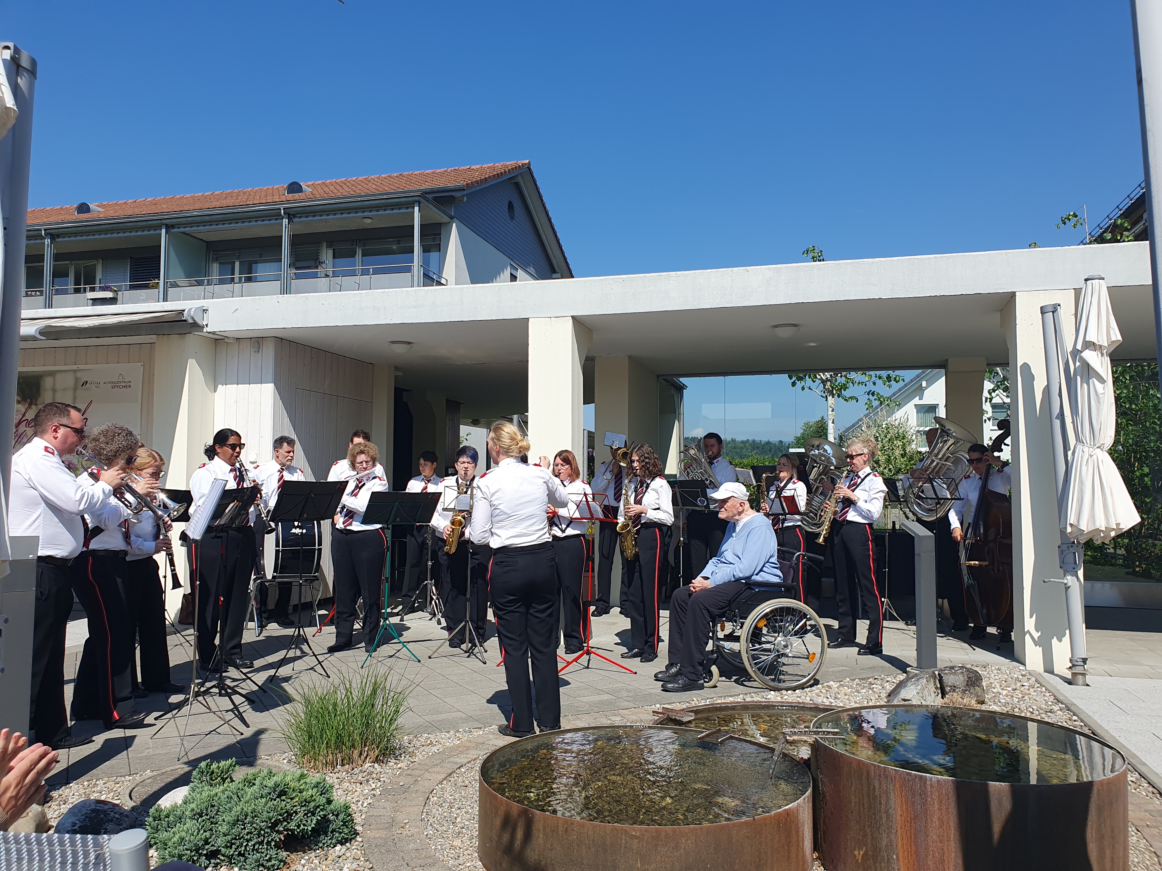 Im wieder schön und besinnlich: Die Musikgesellschaft Roggwil besuchte uns am 24. Dezember 2024 und überraschte uns mit einem Set an weihnächtlichen Liedern. Herzlichen Dank!