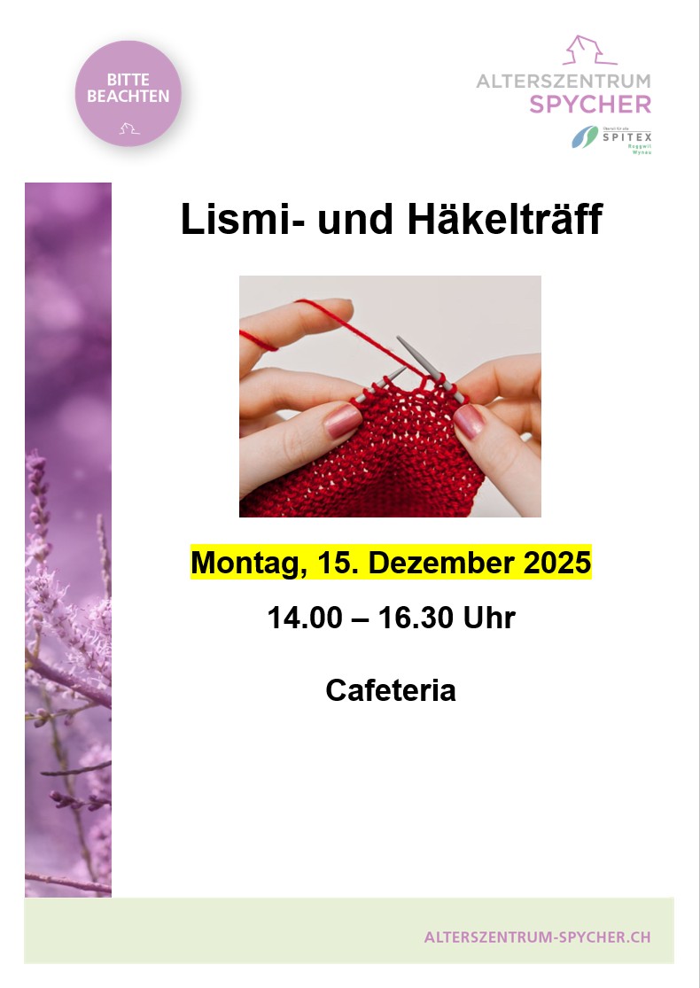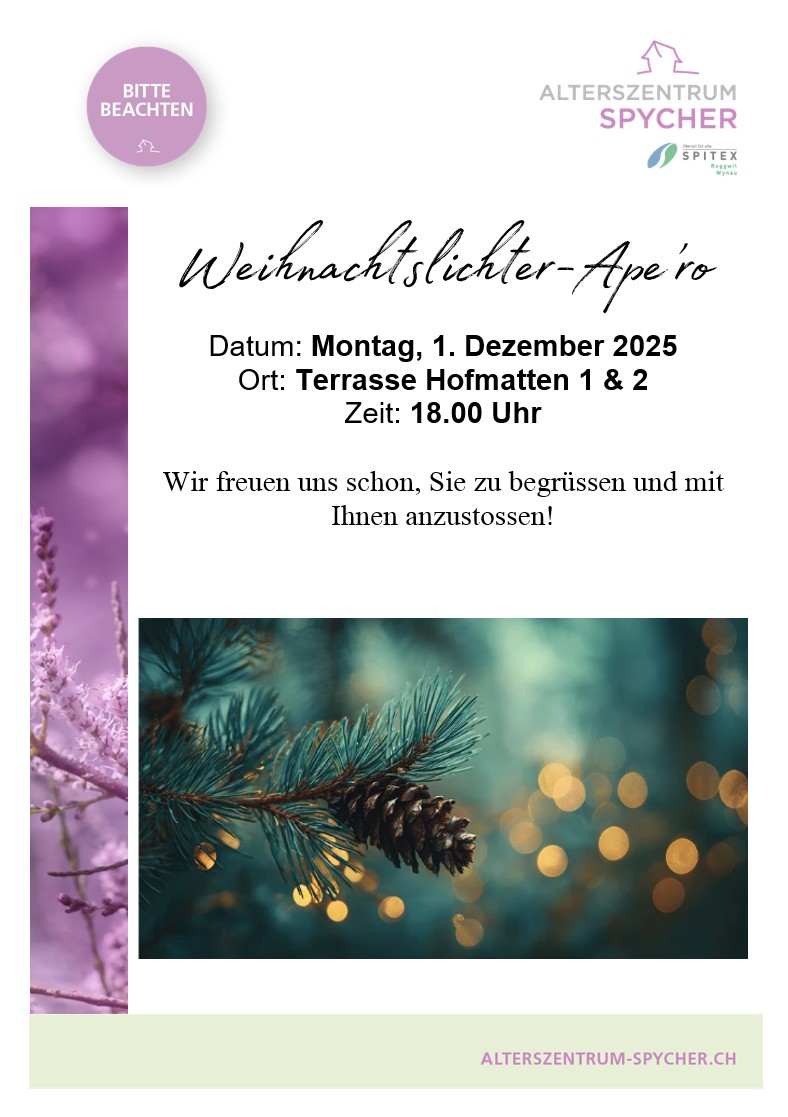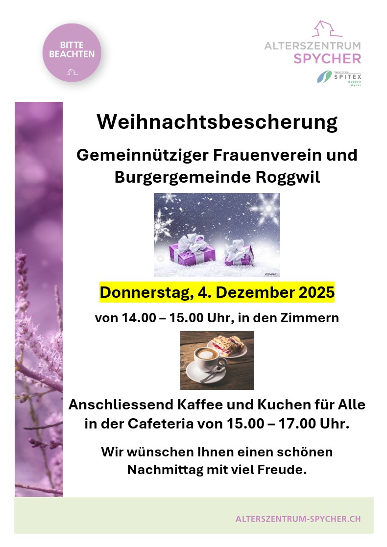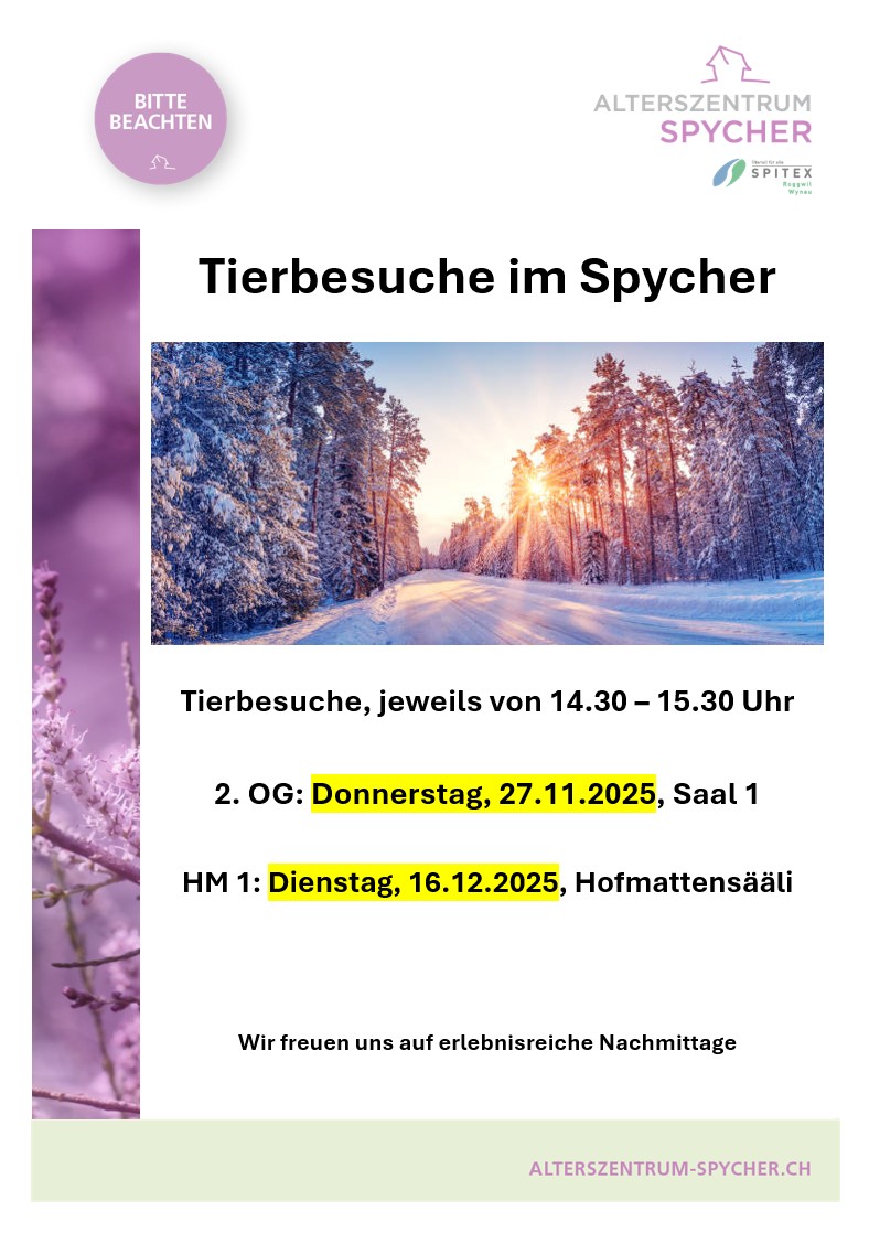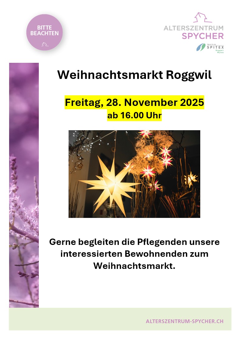 Wir sind aktiv und bieten täglich verschiedene Aktivitäten an. Die entsprechenden Wochenpläne sind auf den Abteilungen aufgehängt. Möchten Sie etwas Spezifisches wissen, dürfen Sie uns jederzeit gerne anrufen.
